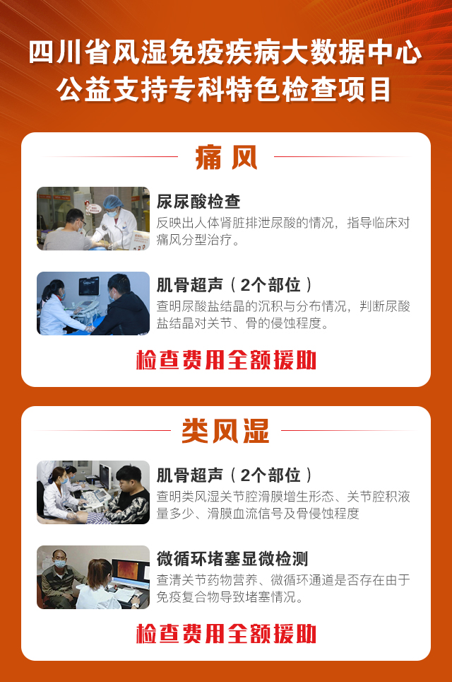 活动期间,提前预约到院后,痛风、类风湿患者即可享受专科精准检查援助: