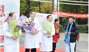 (图:感恩节义诊活动上陈建春主任主治康复后患者赠送其鲜花)