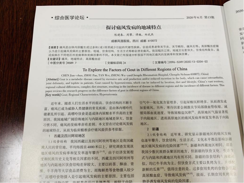 论文名:《探讨痛风发病的地域特点》(稿件编号:SL81A- 2011-37)