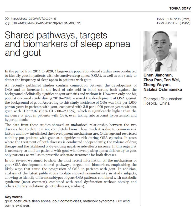论文名:《痛风患者合并睡眠呼吸暂停综合征的潜在机制、生物标记及患者亚型的研究进展》