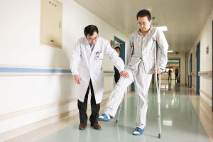 第四、强直性脊柱炎抬腿。令你的双膝弯曲并且将你的双足与下背平贴地面,现在伸直并且尽可能抬高之。维持此姿势缓慢数到5再放下来。对另腿做同样运动。如果你的双腿虚弱无力麻木时切勿从事此运动。