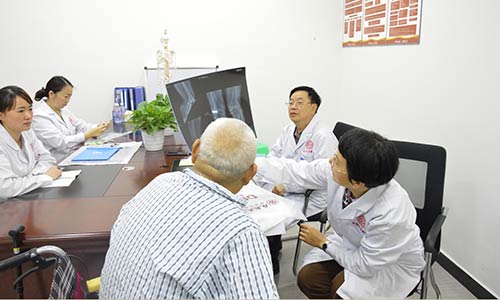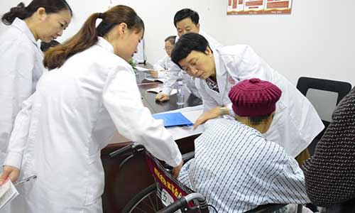 同时,陈乐天医生及多位医生还为活动不便的病人弯下腰进行看诊和问诊,医生们凭借着丰富的临床康复经验和扎实的理论基础,依照检查结果,对病人病情病况进行分析,并共同讨论商议,以制定疗效高、疗程短、花费少的针对性治疗方案,确保病人及时有效康复。