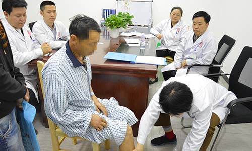 京蜀两地多位医生认真检查病人关节活动度等各项指标,细心研究每一位病人检查报告,并进行触诊,不放过一丝细节,保障精确诊断。