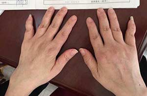 陈建春主任与医院多位医生联合会诊,经过对向女士的检查结果分析发现,患者的类风湿性关节炎治疗存在二个难点:1.患者长期服药造成的体虚细化系统紊乱,需及时调理;2.患者手指关节变形严重,需要矫正后才能恢复活动能力。